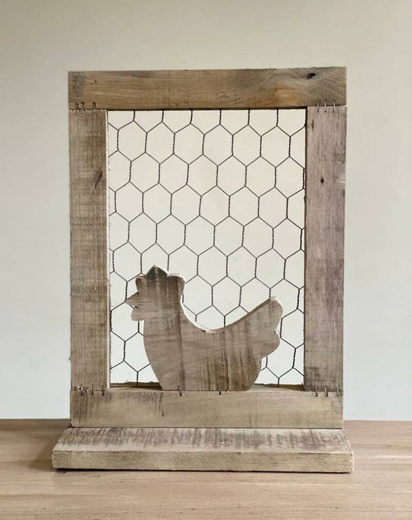 Frame hout met kip en gaas naturel 28 x 39 x 11,5 cm.